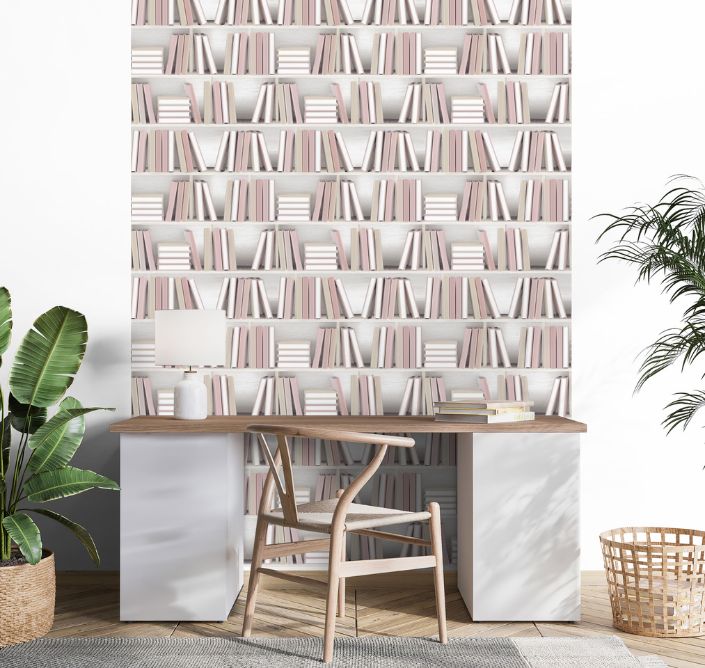 Met dit behang haal je de sfeer van een knusse bibliotheek in huis. Rijen boeken op sfeervolle planken creëren een warm en karaktervol decor dat direct uitnodigt tot wegdromen. Geen gesjouw met boeken, maar wél die rijke uitstraling van een goed gevulde boekenkast.