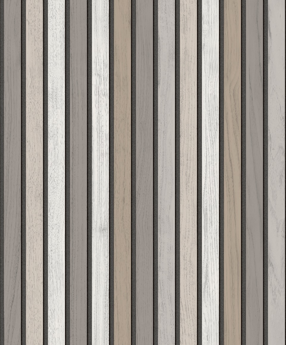 Dit behang laat je denken aan elegante houten latjes en geeft je muur direct de rustige, moderne uitstraling van een luxe wandbekleding. Geen schroeven of zaagwerk nodig, alleen maar stijl en sfeer in één simpele beweging.