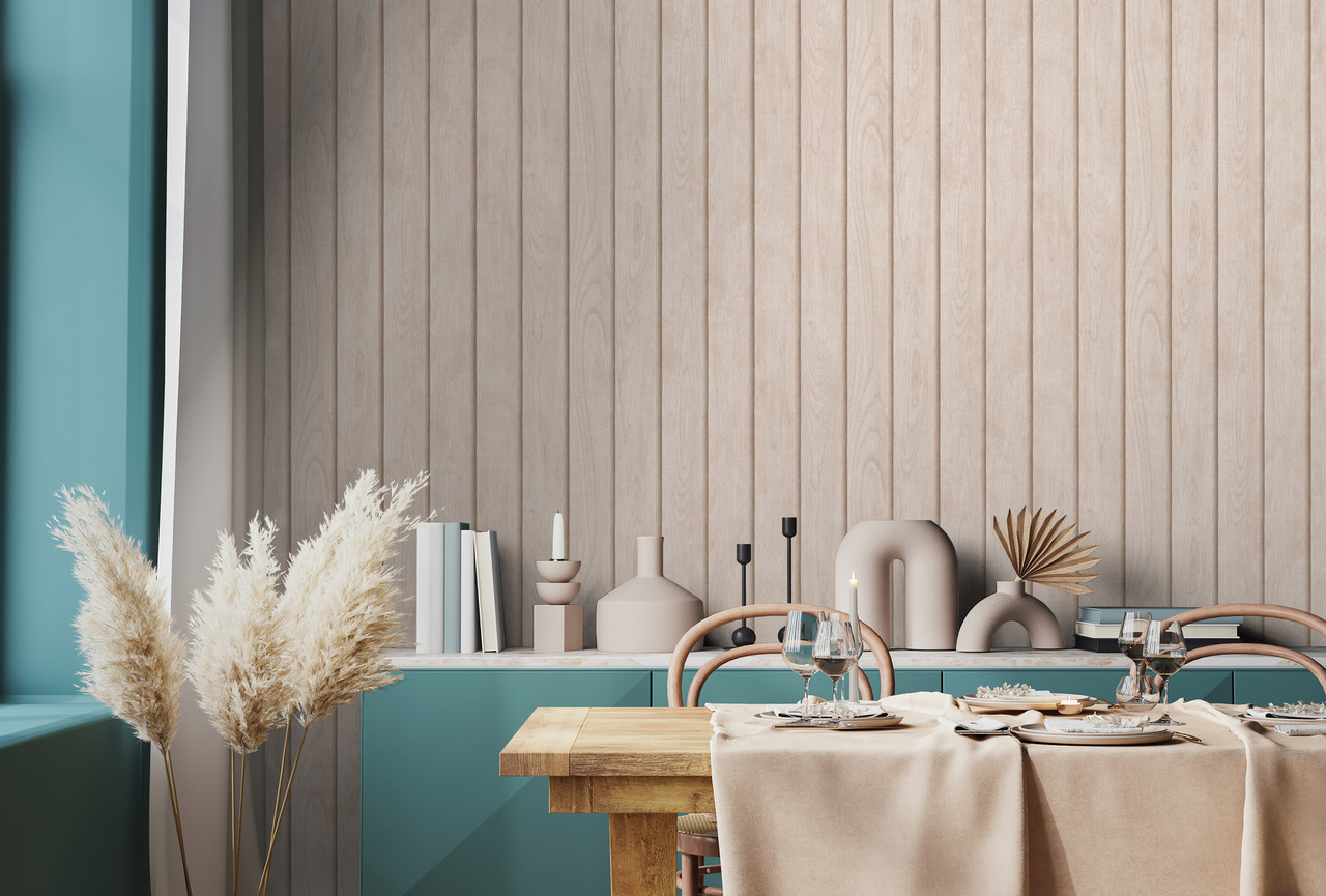 Dit behang geeft je muur de authentieke uitstraling van houten planken. De natuurgetrouwe nerven en kleurnuances brengen direct sfeer en een gevoel van rust in huis.