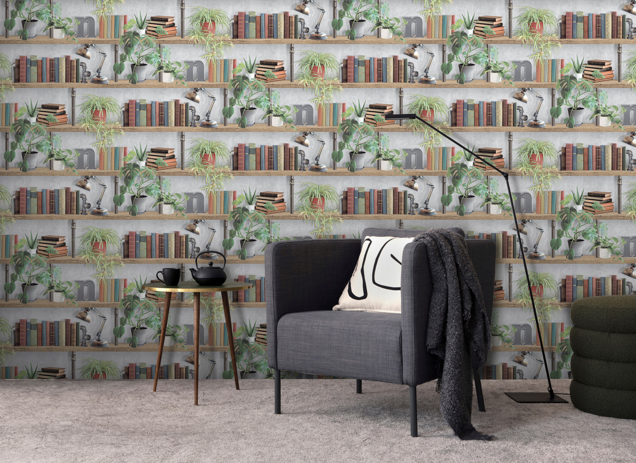 Met dit behang haal je de sfeer van een knusse bibliotheek in huis. Rijen boeken op sfeervolle planken creëren een warm en karaktervol decor dat direct uitnodigt tot wegdromen. Geen gesjouw met boeken, maar wél die rijke uitstraling van een goed gevulde boekenkast.