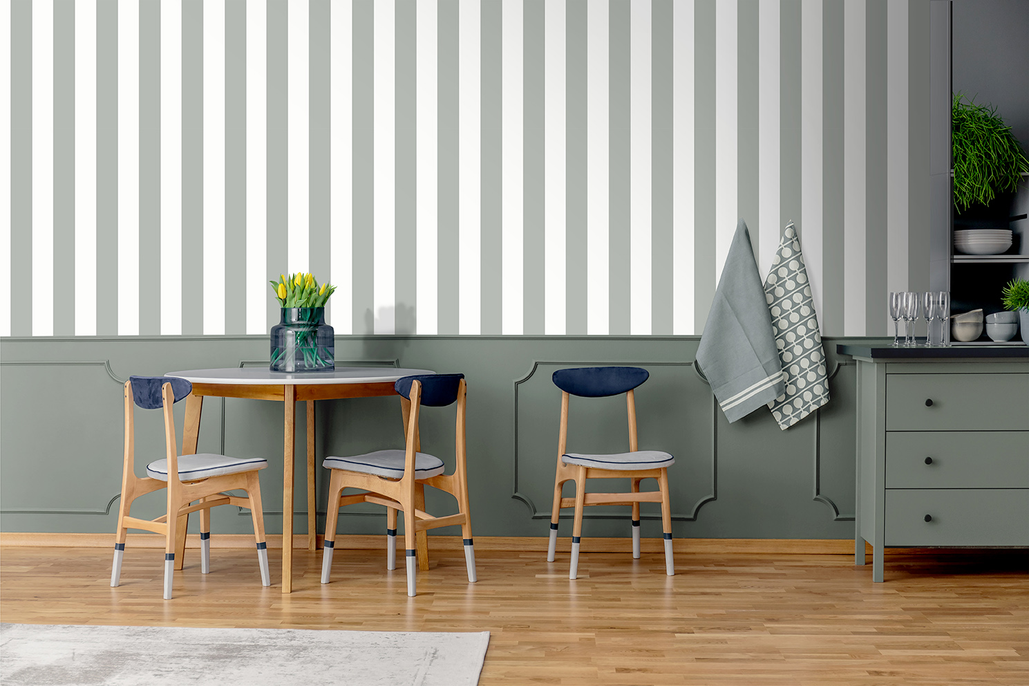 Behang met brede strepen is tijdloos en vol karakter. Het ritme van de banen geeft je muur structuur en laat een ruimte hoger, breder of juist spannender aanvoelen, afhankelijk van de richting waarin je het toepast.