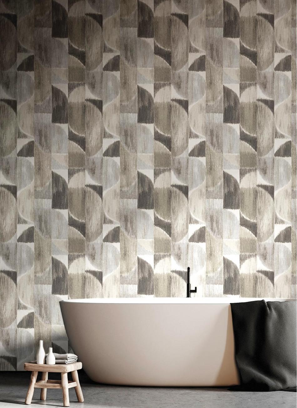 Dit behang lijkt geweven, maar verrast met een grafisch patroon dat diepte en ritme brengt. De fijne structuur roept het gevoel van textiel op, terwijl het ontwerp een moderne twist geeft aan elke muur.