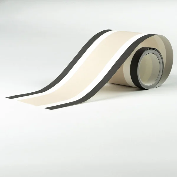 Een mix van strepen. De L Elégante-rand is breder dan de biezen en is een ongelooflijke combinatie van strepen: twee smalle strepen omringen een bredere contrasterende streep op een witte basis. Dit delicate ontwerp van 13 cm past bij vele kleurvariaties.