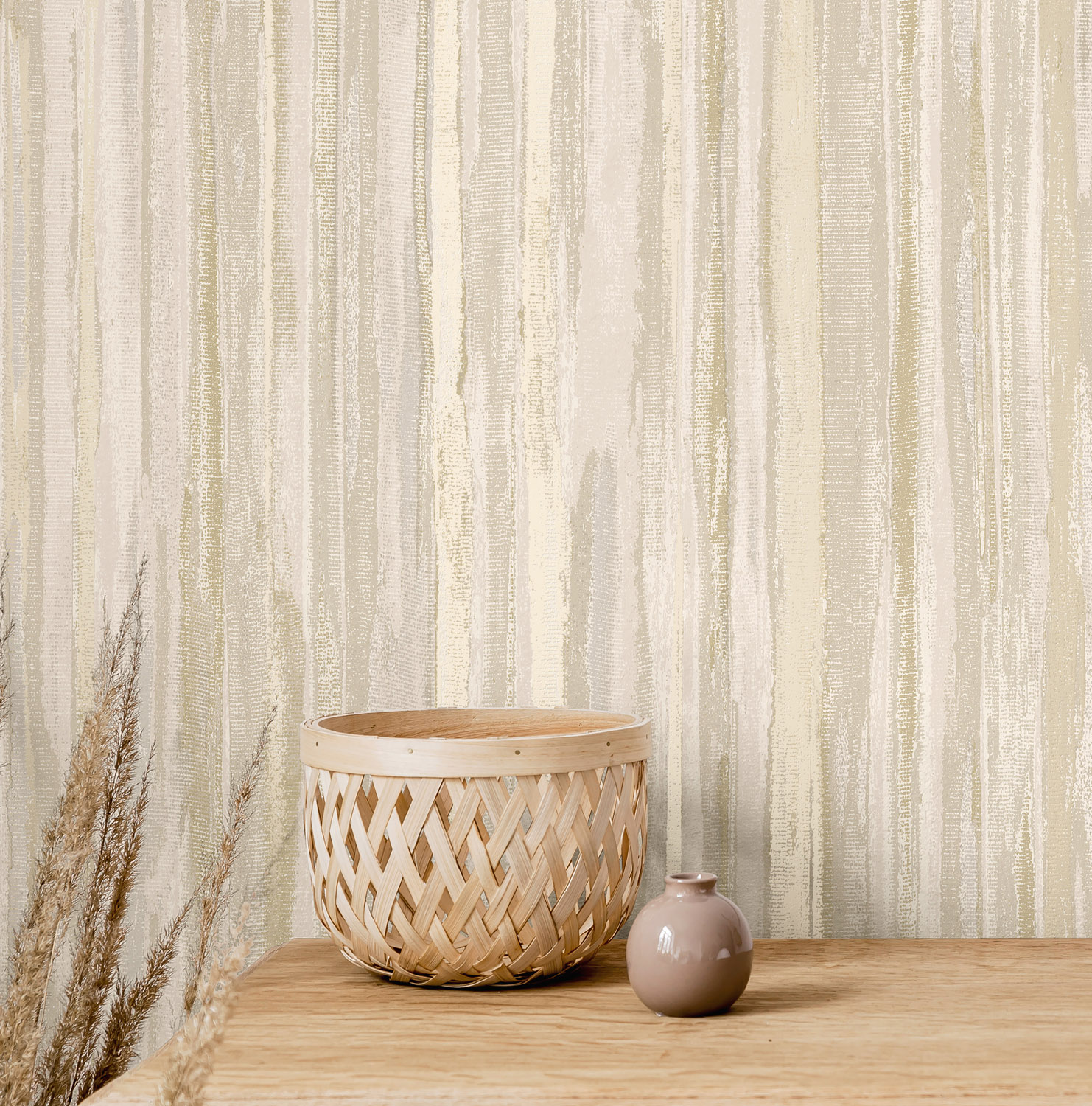 Calico valt op door z’n gestructureerde strepen en vloeiende penseelstreken die beweging brengen in je muur. De mix van matte texturen en metallic details laat het licht prachtig spelen en geeft het ontwerp een luxe, levendige uitstraling.