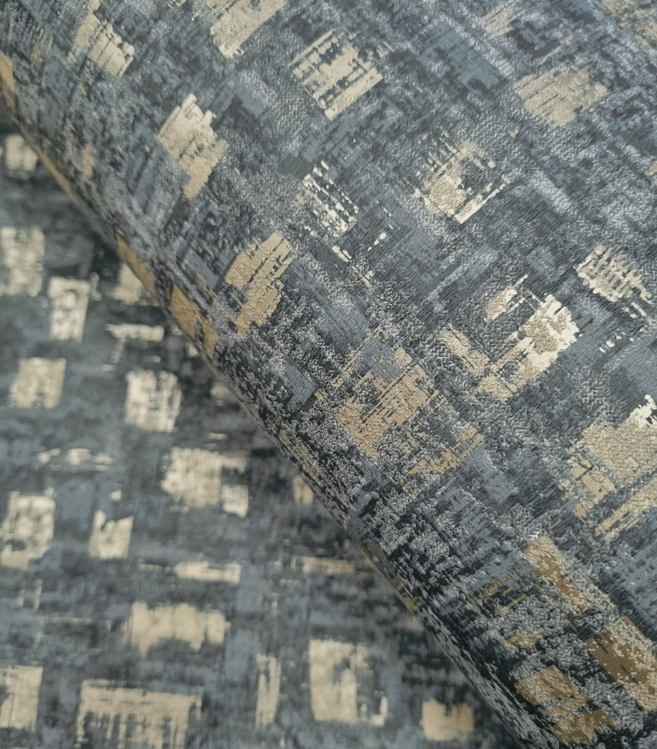 Valora speelt met geborstelde blokken die speels stapelen en elkaar overlappen. Dit creëert een vloeiende, bijna driedimensionale look die direct sfeer geeft aan je muur. De zachte geborstelde textuur en subtiele metallic accenten zorgen voor een warm lichtspel en verzachten het strakke patroon.