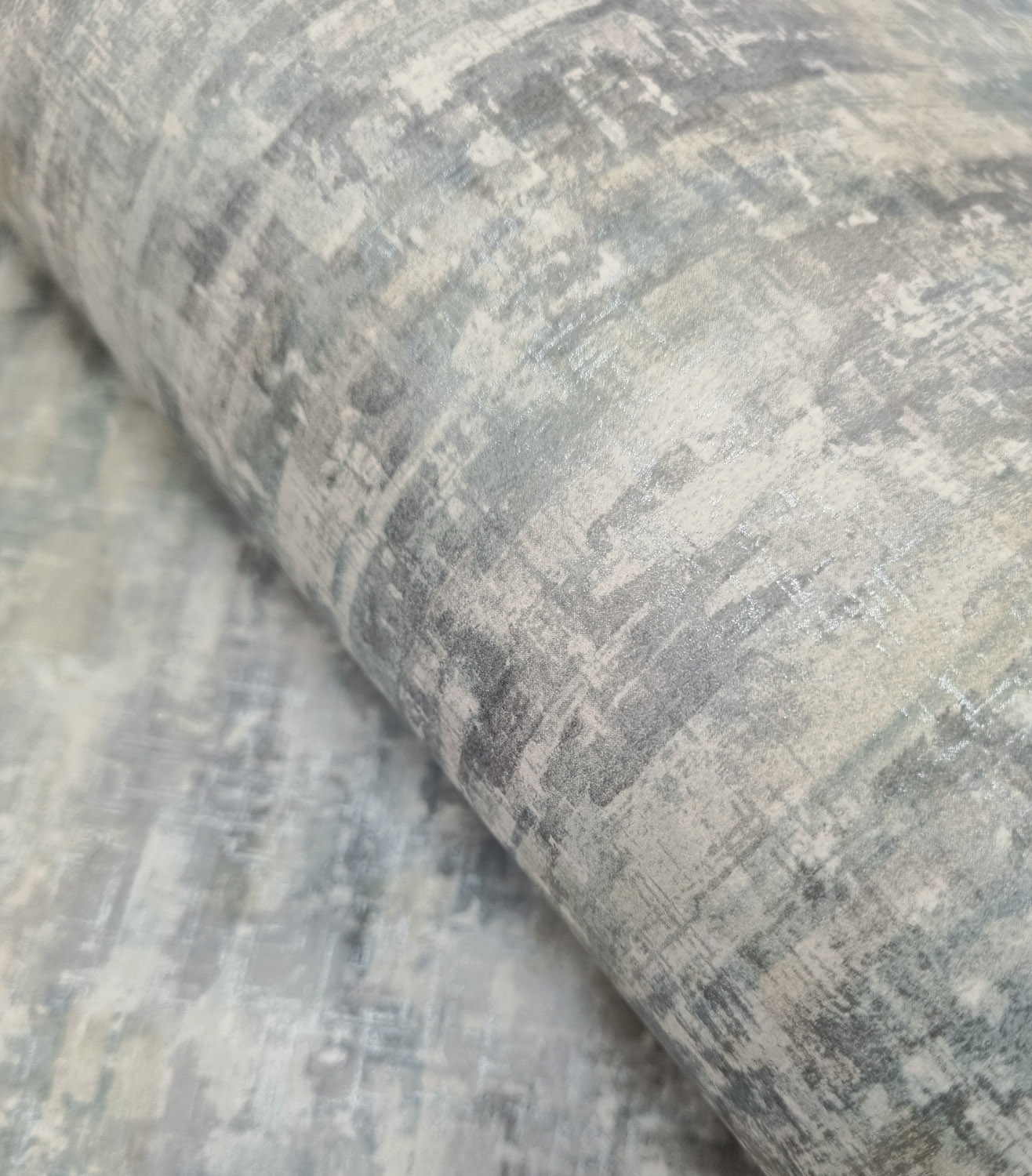 Valora speelt met geborstelde blokken die speels stapelen en elkaar overlappen. Dit creëert een vloeiende, bijna driedimensionale look die direct sfeer geeft aan je muur. De zachte geborstelde textuur en subtiele metallic accenten zorgen voor een warm lichtspel en verzachten het strakke patroon.