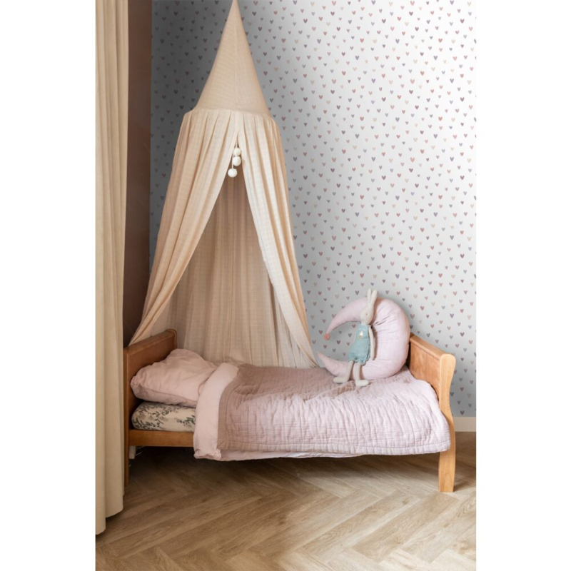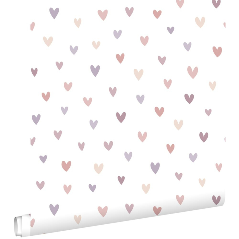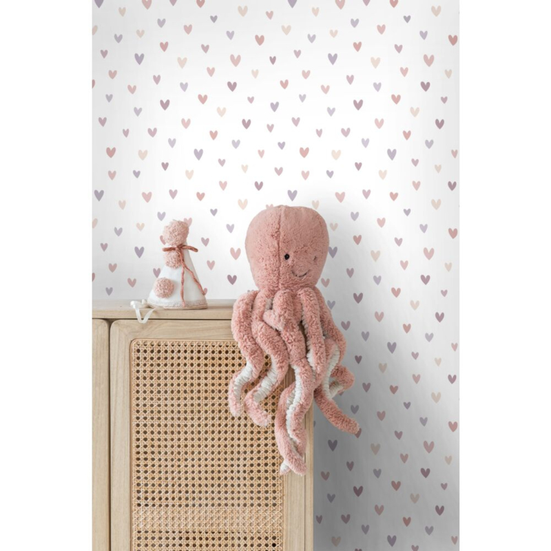 Met dit vrolijke meisjesbehang vol hartjes in terracotta en lila geef je de kinderkamer meteen een lief en gezellig karakter. Combineer het met frisse kleuren en zachte materialen en je creëert een fijne plek waar je kind zich helemaal thuis voelt.