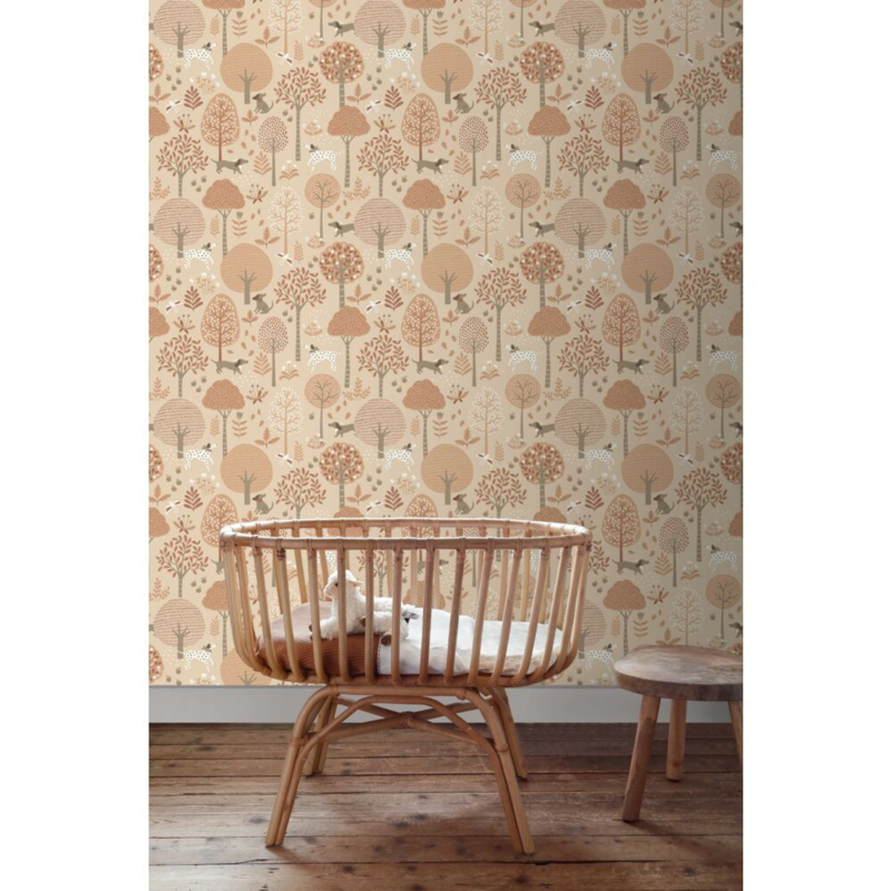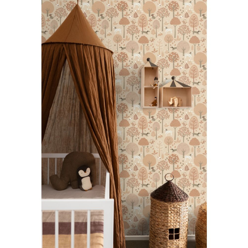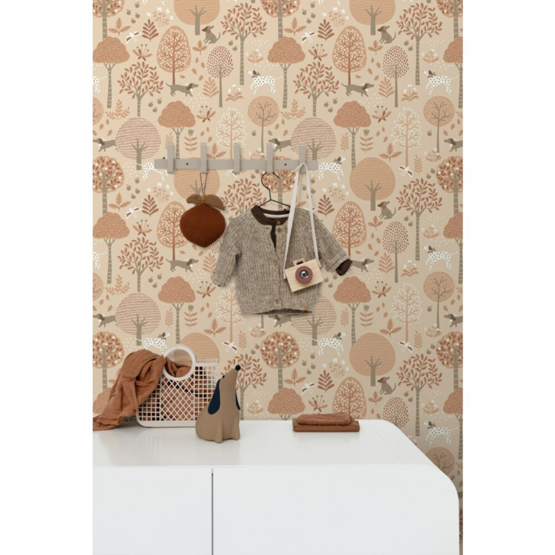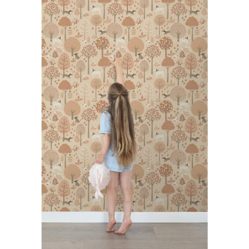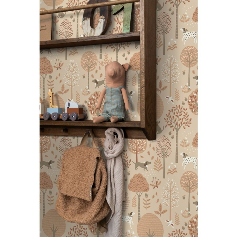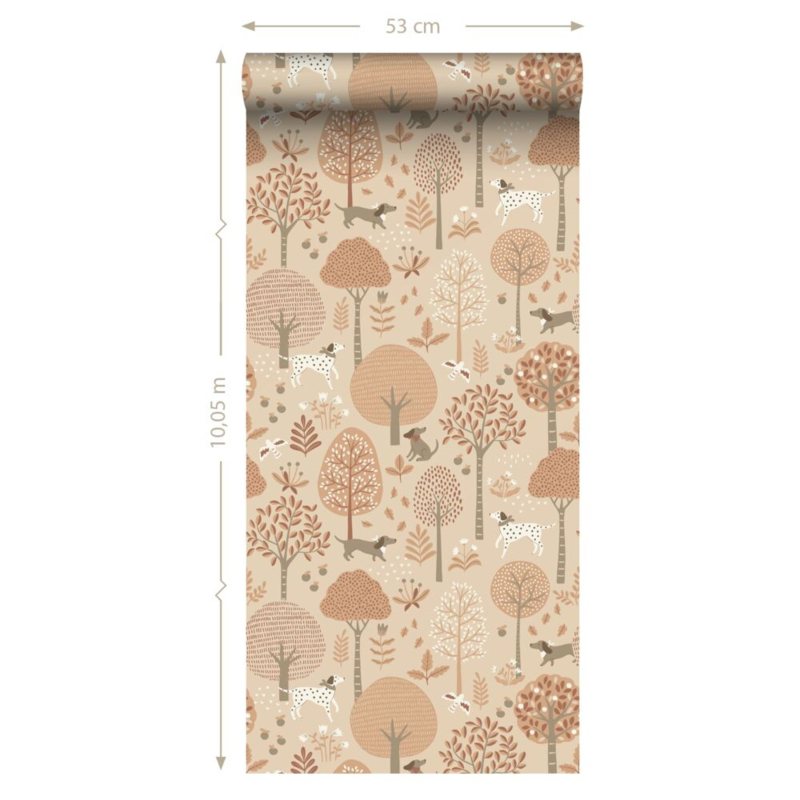 Tover de kinderkamer om tot een gezellige plek met dit trendy kinderbehang met honden in beige en terracotta roze. Het behang zorgt voor een warme sfeer en combineert prachtig met lichte kleuren en natuurlijke materialen.
