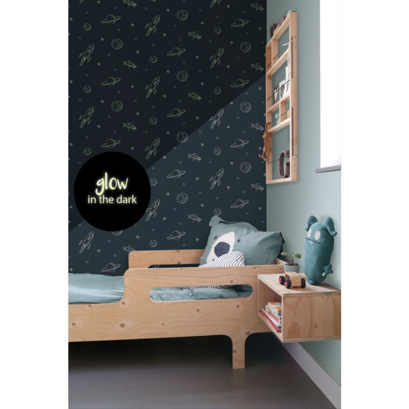 Twinkle twinkle little star… Dit betoverende glow-in-the-dark behang is overdag al een echte blikvanger, maar zodra het donker wordt, komt het pas écht tot leven! Honderden fonkelende sterretjes lichten op en veranderen de kinderkamer in een magische sterrenhemel. Dat wordt heerlijk wegdromen!