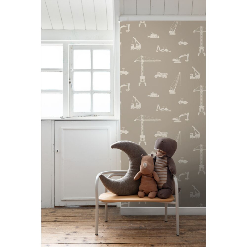 Creëer een fantastische jongenskamer met dit hippe behang met voertuigen in taupe. Het behang zorgt voor een gezellige sfeer en je kunt het mooi combineren met lichte kleuren en natuurlijke materialen.