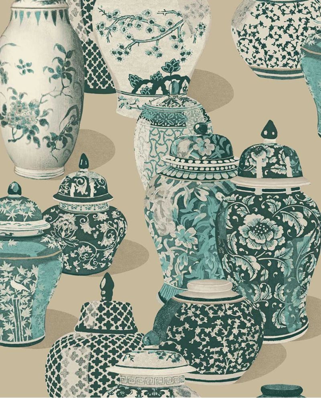 Eijffinger Magnifique Behang – Elegante vazen in blauw en beige