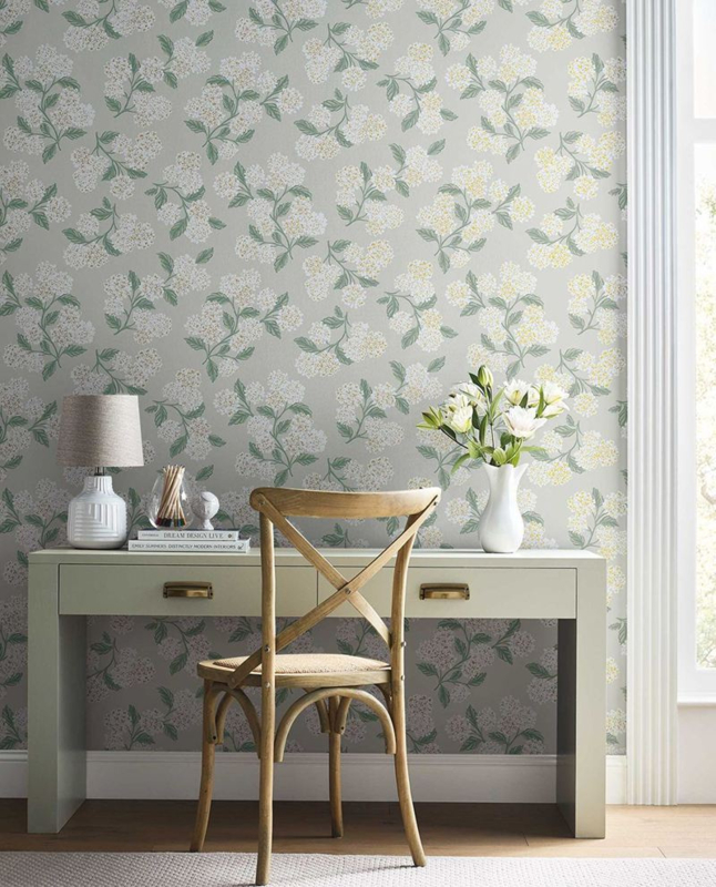 Breng rust, charme en natuurlijke schoonheid in huis – met het Hydrangea behang van Eijffinger Rifle Paper Co, exclusief verkrijgbaar bij Behangwereld.nl.