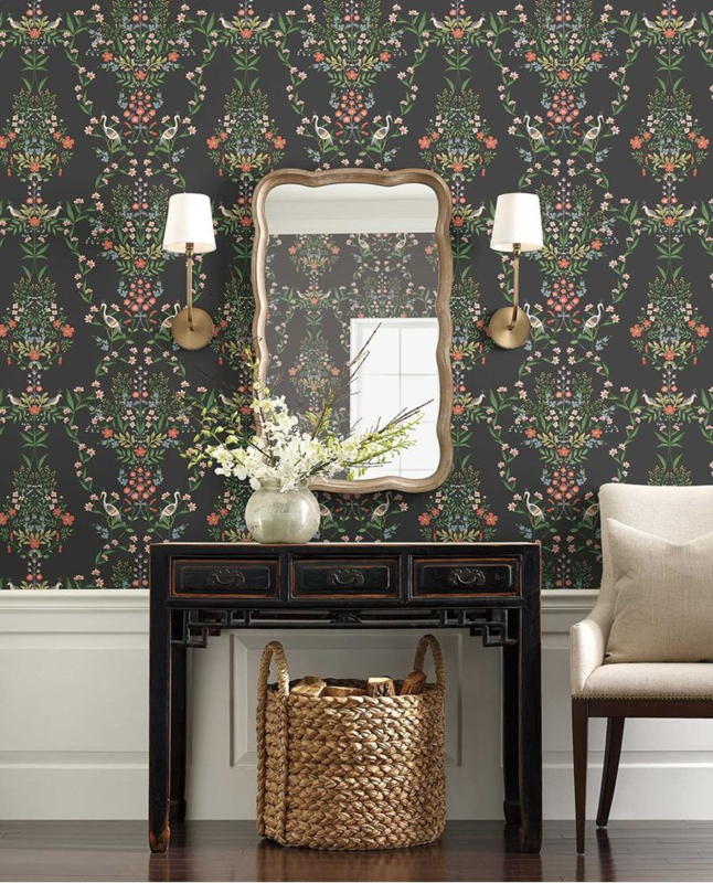 Breng een vleugje botanische elegantie in je interieur met het Eijffinger Rifle Paper Co. RP7329 Luxembourg behang. Dit verfijnde ontwerp toont weelderige bloemen en vogels op een diepe zwarte achtergrond, waardoor een levendige en tijdloze sfeer ontstaat in elke ruimte.
