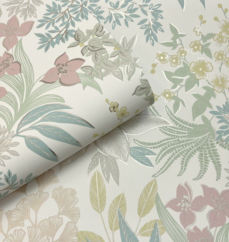Met Full Bloom Cream Pink haal je een charmant, botanisch statement in huis dat rust en elegantie uitstraalt.