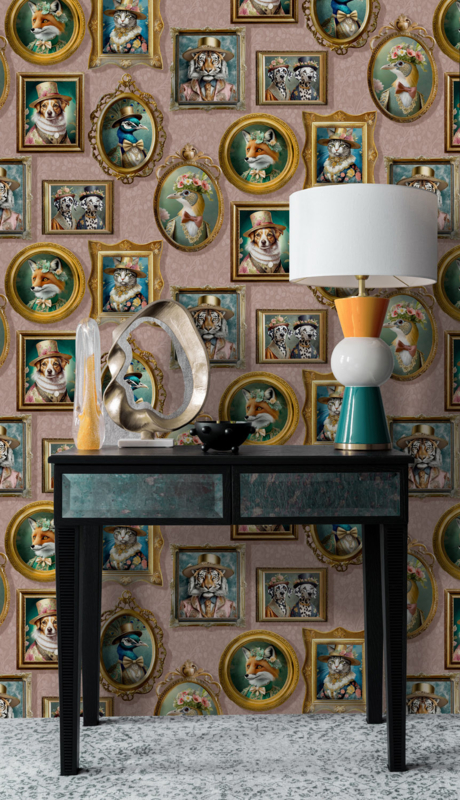 Regal Beasts Pink Behang – Dutch Wallcoverings Imaginarium III