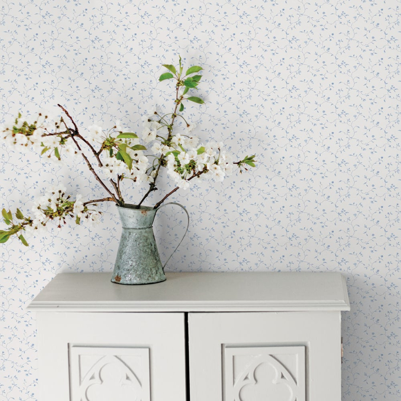 - Subtiel bloemenrankpatroon in blauw op wit