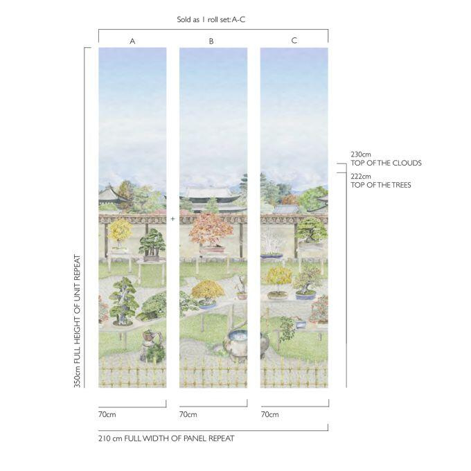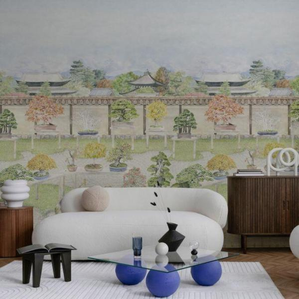 Het digitale behangpaneel Bonsai Garden Leaf Green uit de Cole & Son-collectie is een waar kunstwerk voor de muur. Geïnspireerd op de betoverende Kyoto Bonsai Garden, brengt dit chinoiserie-ontwerp een ode aan de eeuwenoude Japanse kunst van het bonsaisnoeien. Elke zorgvuldig weergegeven boom vertelt zijn eigen verhaal – een symbool van rust, balans, harmonie en geluk.