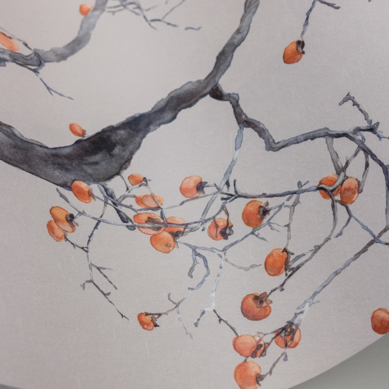 Het behang Kaki Persimmon Mink uit de Cole & Son Shinrin Yoku-collectie is een elegant en tijdloos ontwerp dat de poëtische schoonheid van de Japanse natuur naar je interieur haalt. Dit patroon, afgeleid van de iconische Bonsai Garden, legt de focus op de sierlijke kaki– of persimmonboom, ook wel “de vrucht van de goden” genoemd. De delicate vruchten en takken symboliseren harmonie, elegantie en natuurlijke verfijning.