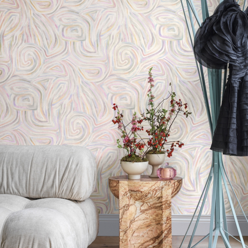 Het abstracte ontwerp nodigt uit tot ontdekking en interpretatie: de vloeiende lijnen en vormen weerspiegelen de elegantie en dynamiek van het menselijk lichaam, terwijl elke blik nieuwe details en perspectieven onthult. Het behang creëert een artistieke, avant-garde sfeer die zowel in woonkamers, slaapkamers als exclusieve projectruimtes een statement maakt.