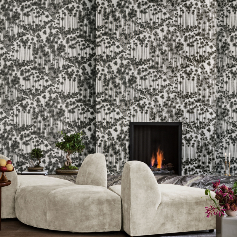 Het behang Japanese Woods Charcoal 126/6018 uit de Shinrin Yoku-collectie van Cole & Son combineert traditionele Japanse technieken met een moderne interpretatie. Geïnspireerd op Daisugi, een duurzame Japanse methode waarbij een heel bos in één boom behouden wordt, brengt dit ontwerp de magie van een eeuwig bos naar je interieur.