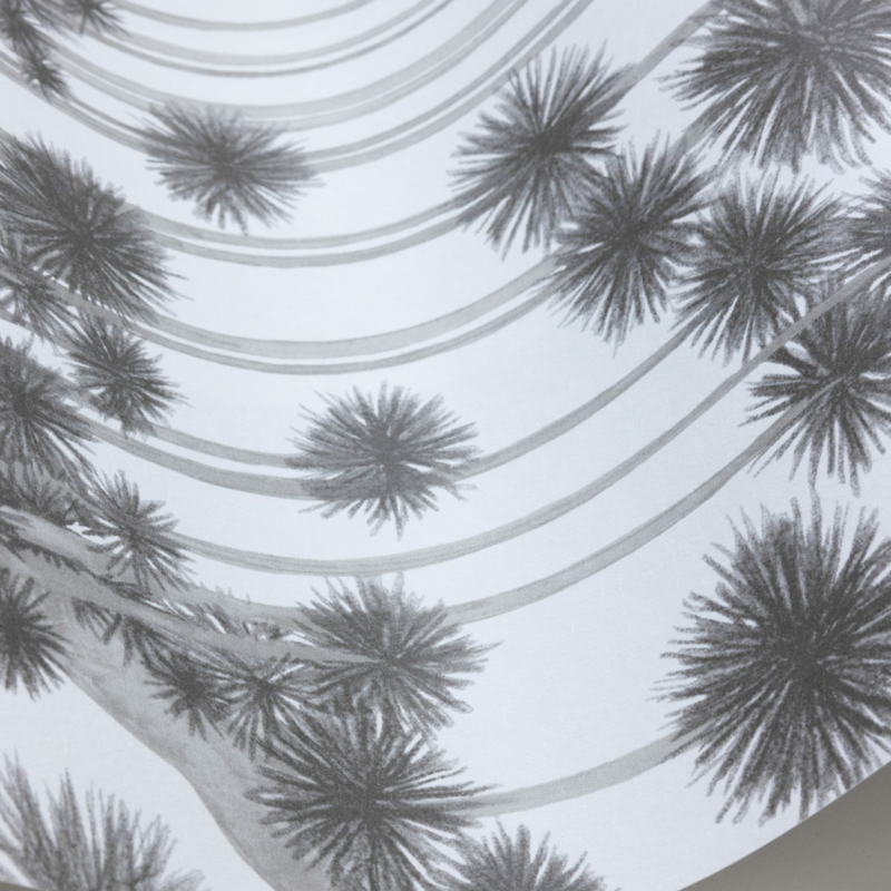 Elke gesnoeide boom draagt de suggestie van een volledig bos, waardoor diepte, perspectief en een eigentijdse grafische uitstraling ontstaan. De monochrome, donkergrijze tinten van Japanese Woods Iron creëren een rustige, elegante en moderne sfeer, perfect voor accentwanden of volledige wandbekleding in woonkamers, slaapkamers of exclusieve projectruimtes.