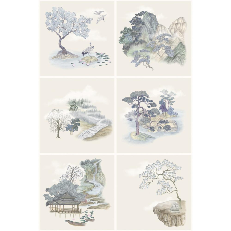 Het behang Tile Toile Blue 126/10036 van Cole & Son uit de Shinrin Yoku-collectie brengt de rust en schoonheid van Japanse tuinen in uw interieur. Geïnspireerd door het Zilveren Paviljoen in Kyoto, combineert dit ontwerp een tegelachtige structuur met subtiele Toile de Jouy-invloeden, waarbij elke tegel een stil en elegant stilleven toont. Samen vormen de tegels een harmonieuze compositie die geschiedenis en verfijning in uw ruimte brengt. Ideaal voor woonkamers en slaapkamers, voor een tijdloze en serene uitstraling.