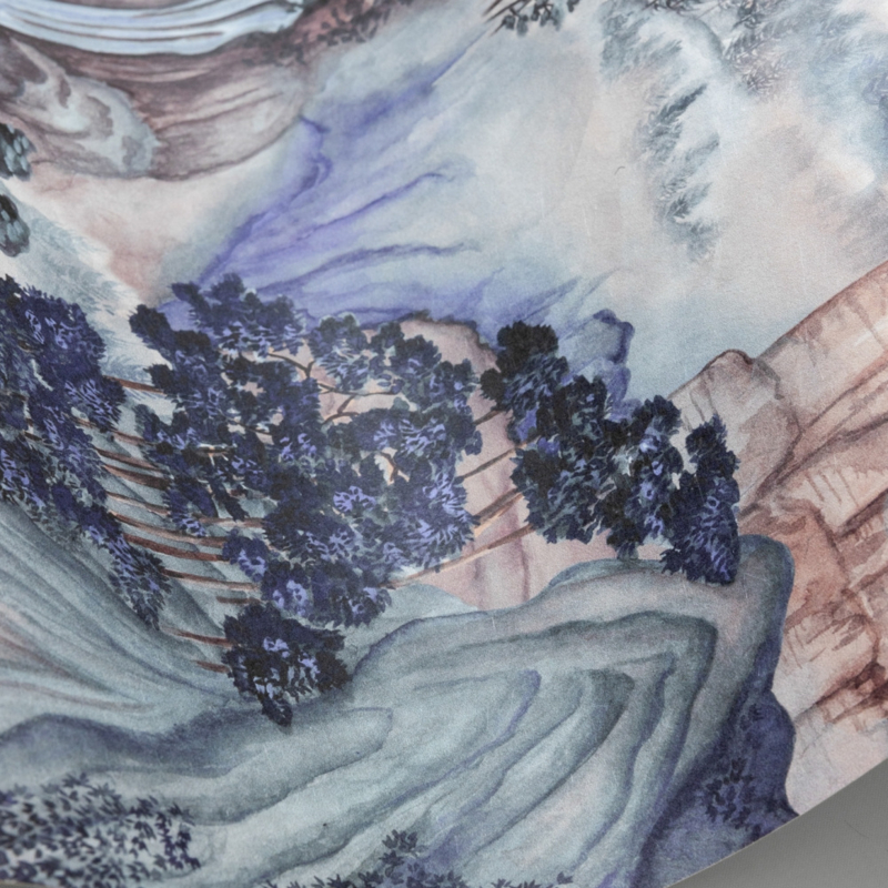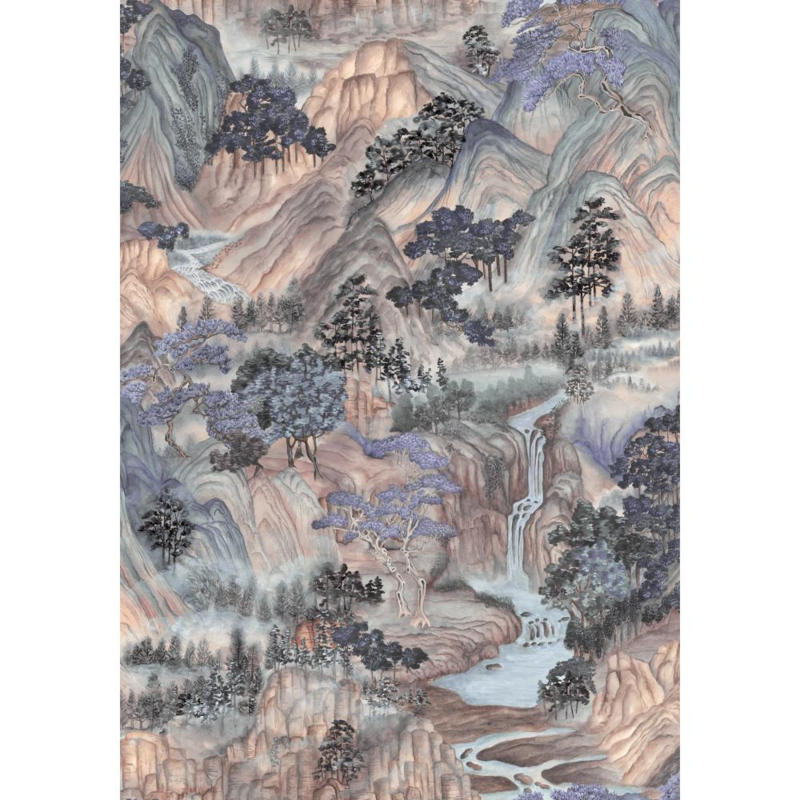 Breng de tijdloze schoonheid van Japanse bergen en tuinen in huis met Cole & Son Mountainscape Misty 126/11041 – een kunstzinnig behang dat luxe en sereniteit combineert.