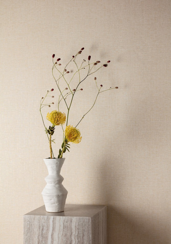 Ontdek de rustige verfijning van Masureel Tonnet Angora ROM301, een elegant behang met een subtiel klein vlechtwerkpatroon dat elke ruimte een stijlvolle, natuurlijke structuur geeft. De zachte angora-tint in beige zorgt voor warmte en harmonie, terwijl het fijne patroon diepte toevoegt zonder te overheersen.