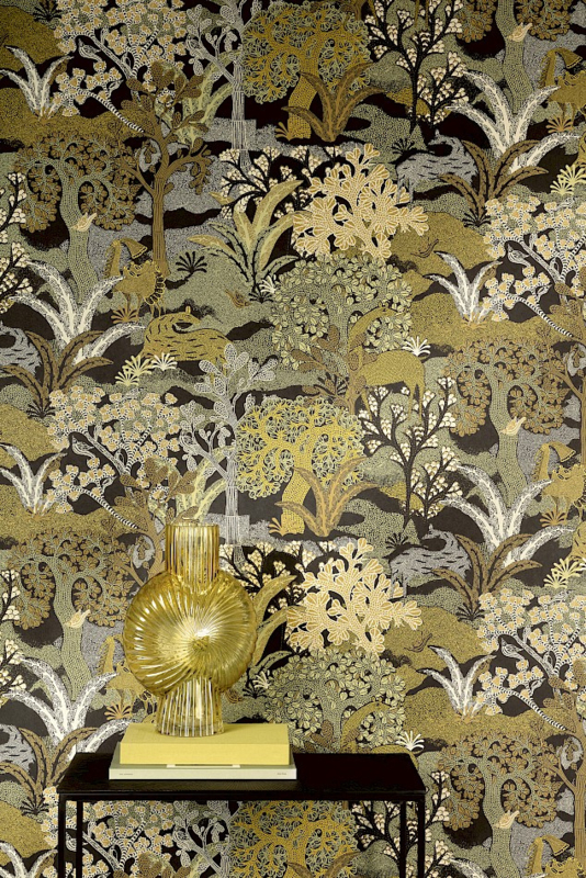 Masureel Fabulo Olive ZON505 uit de Amazone-collectie voegt een luxueus en sfeervol patroon toe aan je interieur. De combinatie van diep zwart, rijke groentinten en subtiele goudaccenten creëert een warme, moderne uitstraling met een vleugje jungle-inspiratie. Dit behang is ideaal voor wie graag een stijlvolle én gedurfde sfeer in huis haalt.