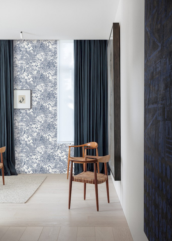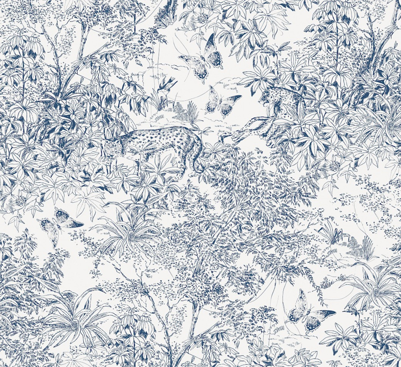 Masureel Scene Ink ZON201 – Blauw op Wit voor een Elegant Jungle-Interieur