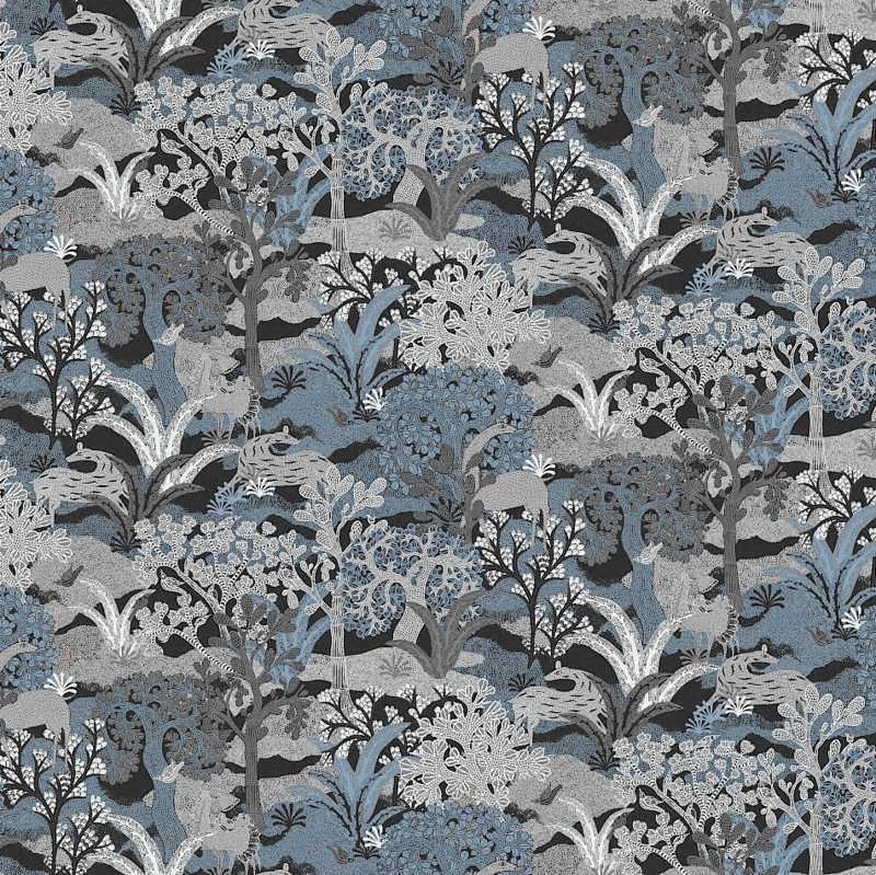Het Fabulo Inkling ZON501 behang uit de Amazone-collectie van Masureel combineert stijlvolle blauwtinten en zachte grijstinten op een diepe zwarte achtergrond, waardoor een krachtig en luxueus effect ontstaat. Het verfijnde dieren- en junglepatroon voegt elegantie, diepte en karakter toe aan je interieur, waardoor iedere muur een statementwand wordt. Perfect voor wie een modern, exotisch en chique accent in huis wil brengen.