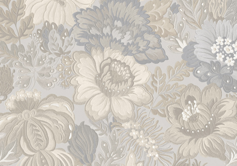 - Elegant behang met subtiel bloemenpatroon in grijs en crème
