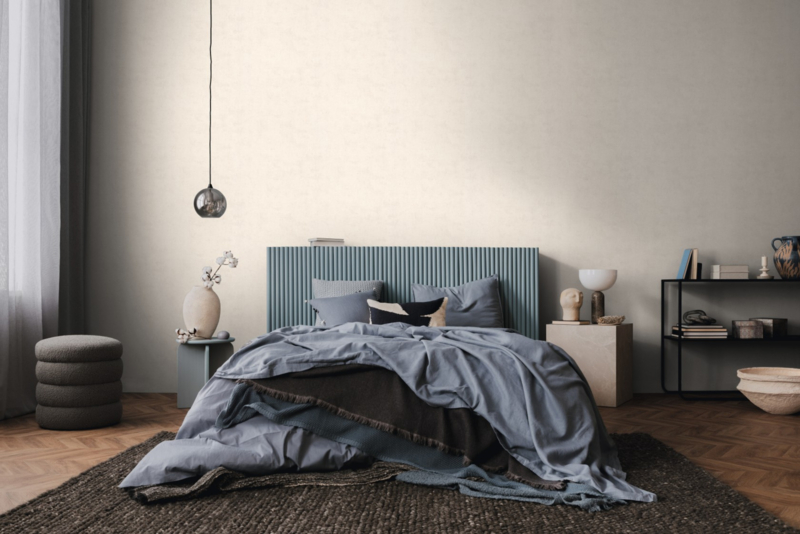 - Tijdloos effen dessin in crème met moderne betonlook