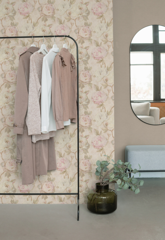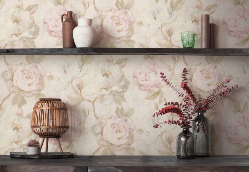 Geef je interieur een romantische en verfijnde uitstraling met het 79167-1 behang uit de Pint Walls 3 collectie van AS Creation. Het ontwerp toont grote bloemen in zachtroze en groene tinten op een warme crème achtergrond, waardoor een luxe, lichte en sfeervolle ambiance ontstaat die elegantie en harmonie uitstraalt.
