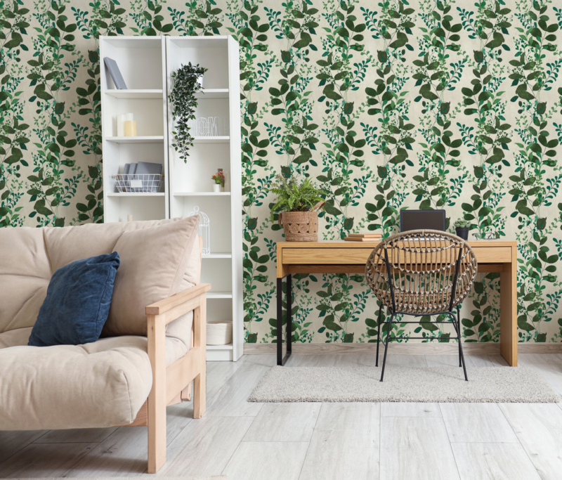 Het ontwerp ademt een moderne botanische sfeer en geeft elke ruimte meer diepte en karakter. Het kleurenpalet van fris groen en off-white past moeiteloos bij houten meubels, natuurlijke materialen en neutrale tinten. Perfect als accentwand in de woonkamer, slaapkamer of werkkamer, maar ook subtiel te combineren met effen behang uit dezelfde collectie voor een harmonieus interieur.
