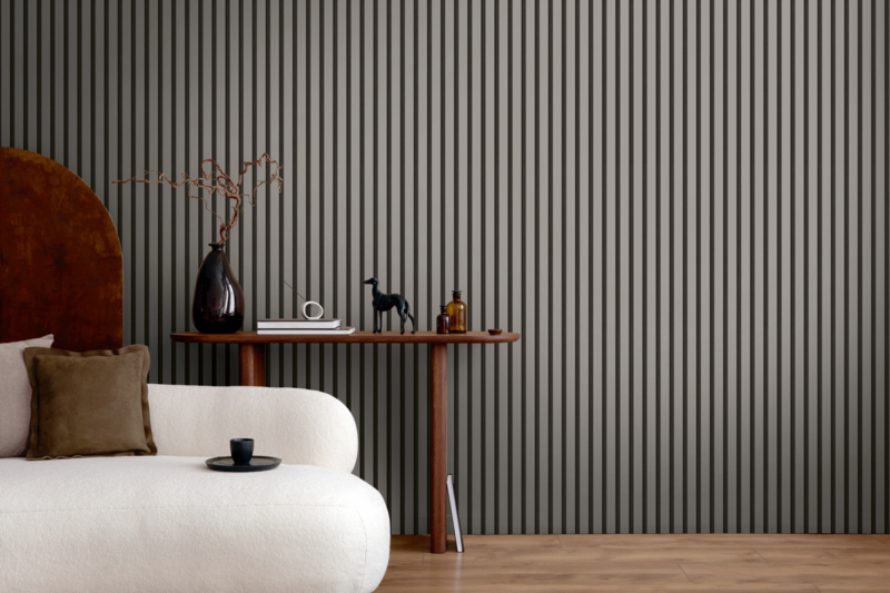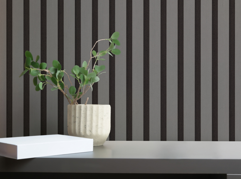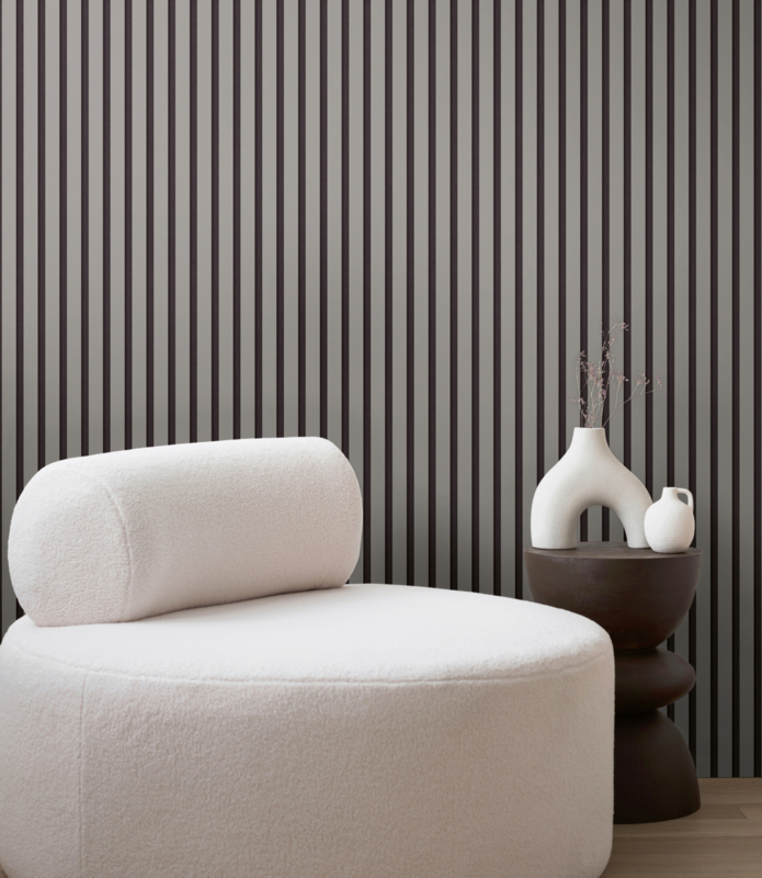 Het verticale streeppatroon creëert hoogte en ruimte, waardoor elke kamer groter en luchtiger aanvoelt. Dankzij het neutrale kleurenpalet past dit behang perfect bij moderne, minimalistische of industriële interieurs. Ideaal als accentwand in de woonkamer, slaapkamer of hal, maar ook uitstekend te combineren met effen behang uit dezelfde collectie.