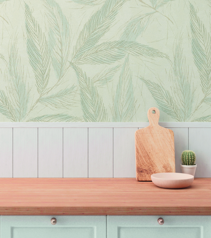 De combinatie van warme crèmetinten, fris zachtgroen en verfijnd zilver brengt rust, harmonie en tijdloze Scandinavische stijl in je interieur. Met dit behang kies je voor een subtiel decoratief accent dat serene elegantie toevoegt aan elke ruimte.