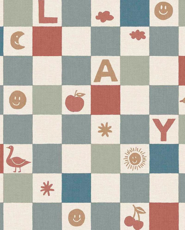 Tiny Treasures 363140 – Ruitbehang met letters, smileys, fruit en wolkjes