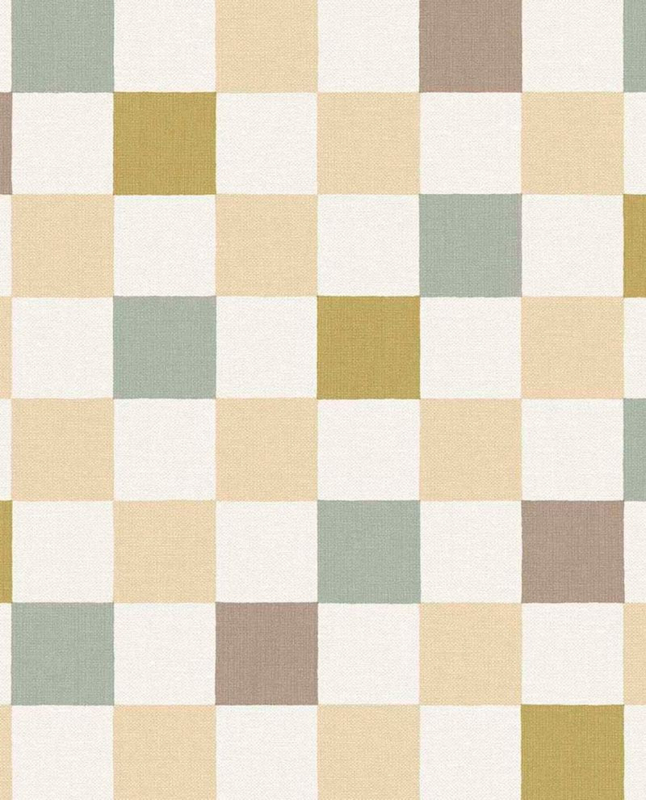 Eijffinger Tiny Treasures 363147 – Ruitbehang in beige, groen en bruin