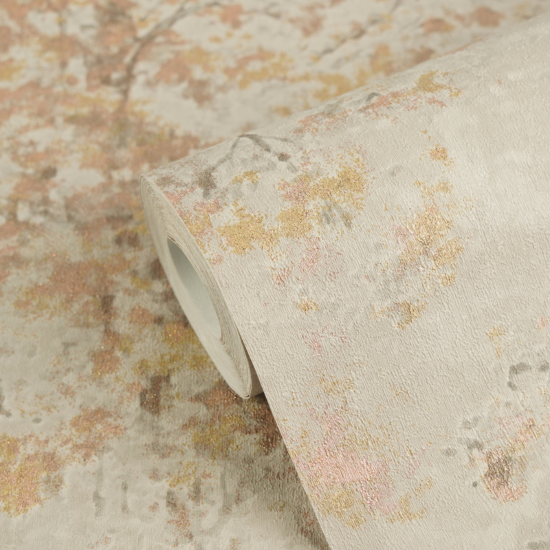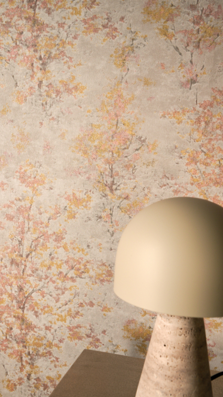 - Abstracte boomkroonstructuur in beige, grijs, goud en rosé voor een zachte, harmonieuze uitstraling