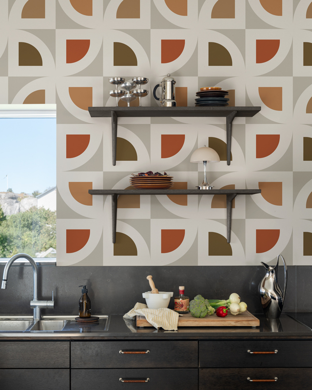 Breng karakter en warme grafische elegantie in je interieur met het London behang (32104) uit de Dutch First Class Grafico collectie. Zachte bogen en strakke lijnen vormen samen een krachtig patroon dat beweging en balans creëert. De rustige greige achtergrond geeft ruimte aan de witte vormen, terwijl accenten in terracotta, gebrand oranje en diep olijfbruin zorgen voor warmte en diepte.
