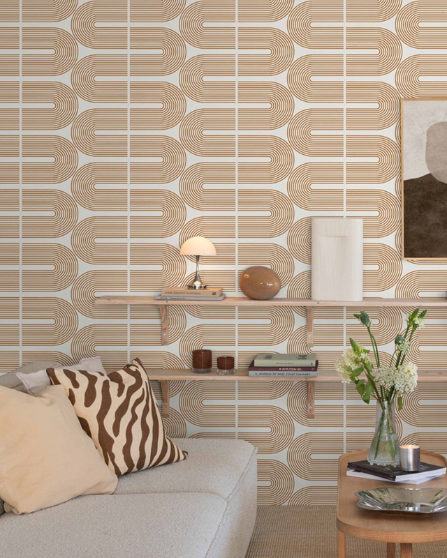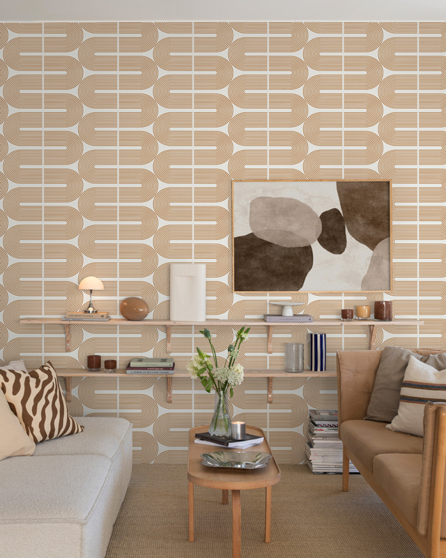 Breng karakter en warme grafische elegantie in je interieur met het London behang (32114) uit de Dutch First Class Grafico collectie. Zachte bogen en strakke lijnen vormen samen een krachtig patroon dat beweging en balans creëert. De rustige greige achtergrond geeft ruimte aan de witte vormen, terwijl accenten in terracotta, gebrand oranje en diep olijfbruin zorgen voor warmte en diepte.