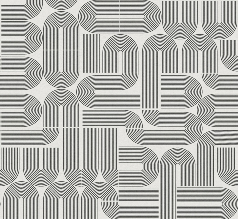 Geef je interieur een krachtig grafisch karakter met het Liverpool behang (GD32146) uit de Dutch First Class Grafico collectie. In deze zwart-witte interpretatie komen de architectonische lijnen van het ontwerp extra sterk naar voren. De bogen en curves bewegen als een verfijnd netwerk over de muur: verbonden, onderbroken en weer doorlopend in een dynamisch ritme.