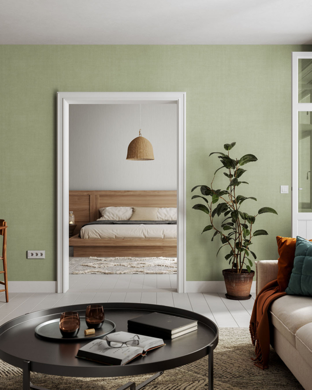 Breng subtiele textuur en rust in je interieur met het Värlöv behang (16038) uit de Dutch First Class Tendenze collectie. Dit lichte groene uni-behang heeft een textielachtige jute-structuur die de muren een zachte tactiele uitstraling geeft en een natuurlijke, rustige sfeer in huis creëert.