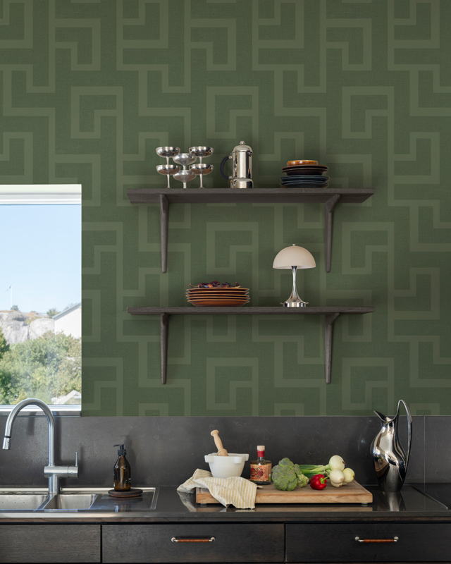 Breng rust en natuurlijke elegantie in je interieur met het Amsterdam 32134 behang van Dutch First Class. Dit donkergroene behang ontvouwt zich als een landschap van bovenaf, waarbij brede lijnen rustig door de muur bewegen als paden door een dicht bos. Iedere bocht en kruising is zorgvuldig geplaatst, waardoor een harmonieuze flow en een gevoel van natuurlijke balans ontstaat.