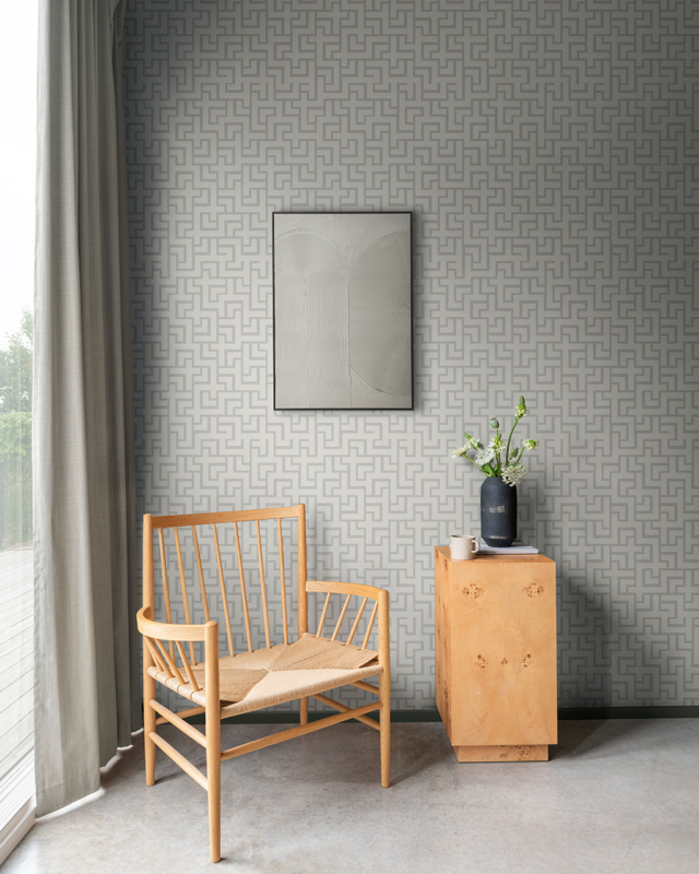 Breng architecturale rust en moderne elegantie in je interieur met het Porto 32128 behang van Dutch First Class. Dit grijze grafische behang speelt met rechte lijnen en hoekige vormen in een zorgvuldig samenspel van structuur en ritme. De lichte velden zijn mat en licht verhoogd, waardoor een subtiel reliëfeffect ontstaat dat de ruimte diepte en karakter geeft. Het ton-sur-ton kleurenschema zorgt voor een rustige maar levendige uitstraling, perfect voor moderne, stijlvolle interieurs.