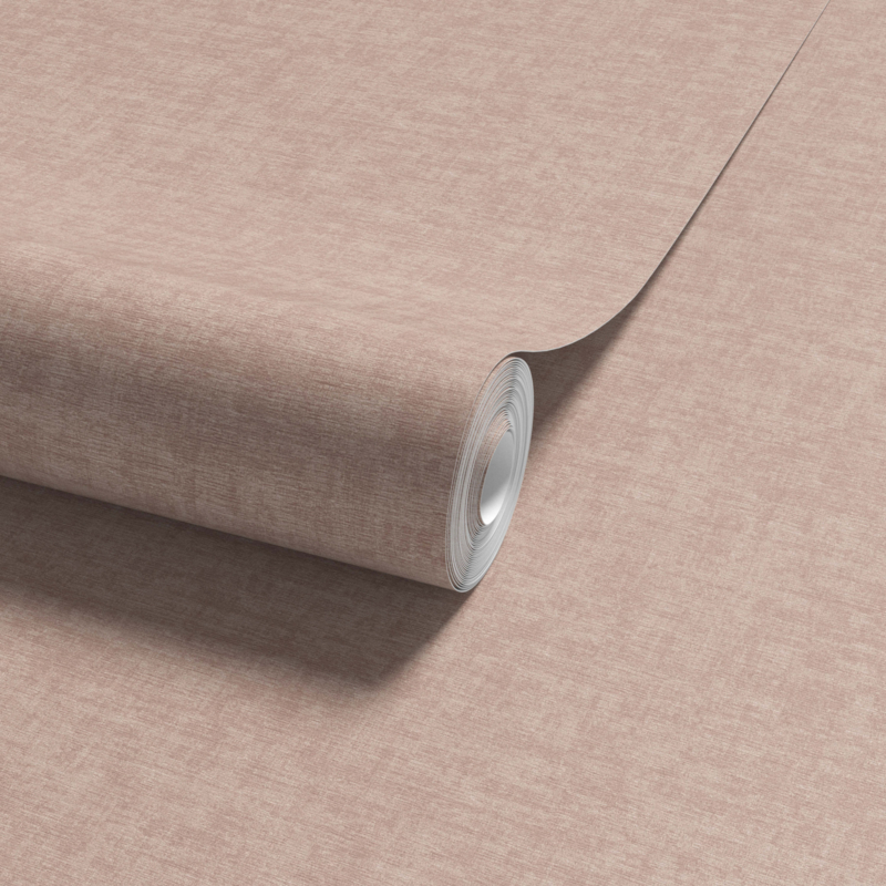 - Poederroze behang met zachte textielstructuur