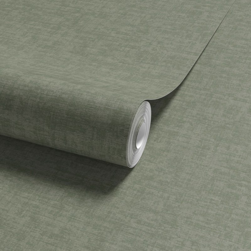 - Saliegroen behang met fluweelachtige textielstructuur