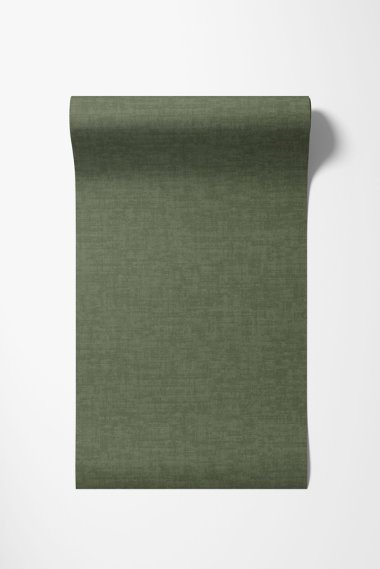 - Olijfgroen behang met fluweelachtige textielstructuur