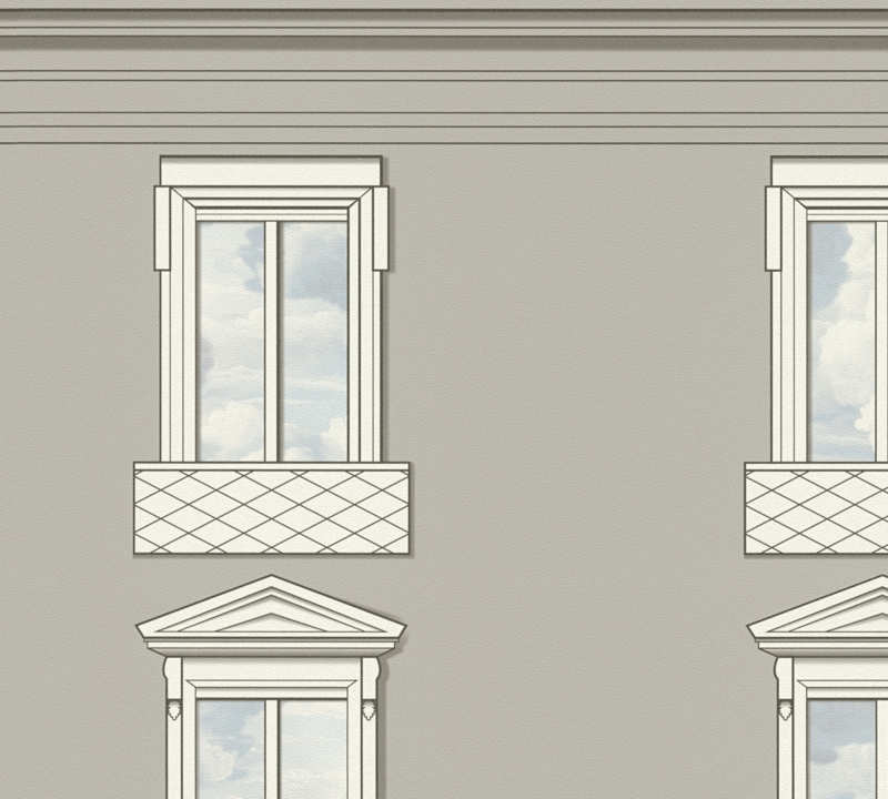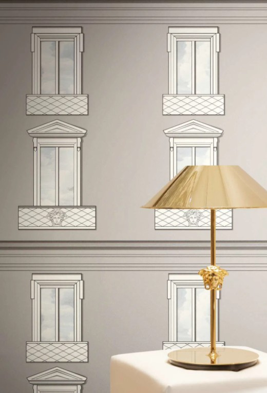 Creëer een luxueuze en architectonische sfeer in je interieur met het Palazzo No 12 79132-1 behang uit de exclusieve Versace Home VI collectie. Geïnspireerd op de grandeur van villa’s en paleizen, combineert dit behang illusies van ramen, zuilen, traliewerkstructuren en colonnade-elementen, waardoor muren veranderen in elegante gevels met een speels perspectief.